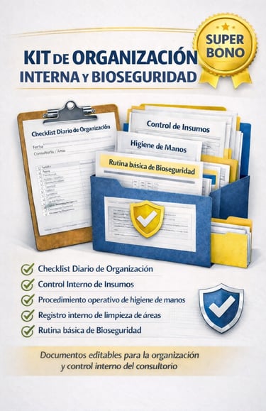 Organización interna, bioseguridad y aplicación profesional de la anamnesis, incluidos sin costo adicional.