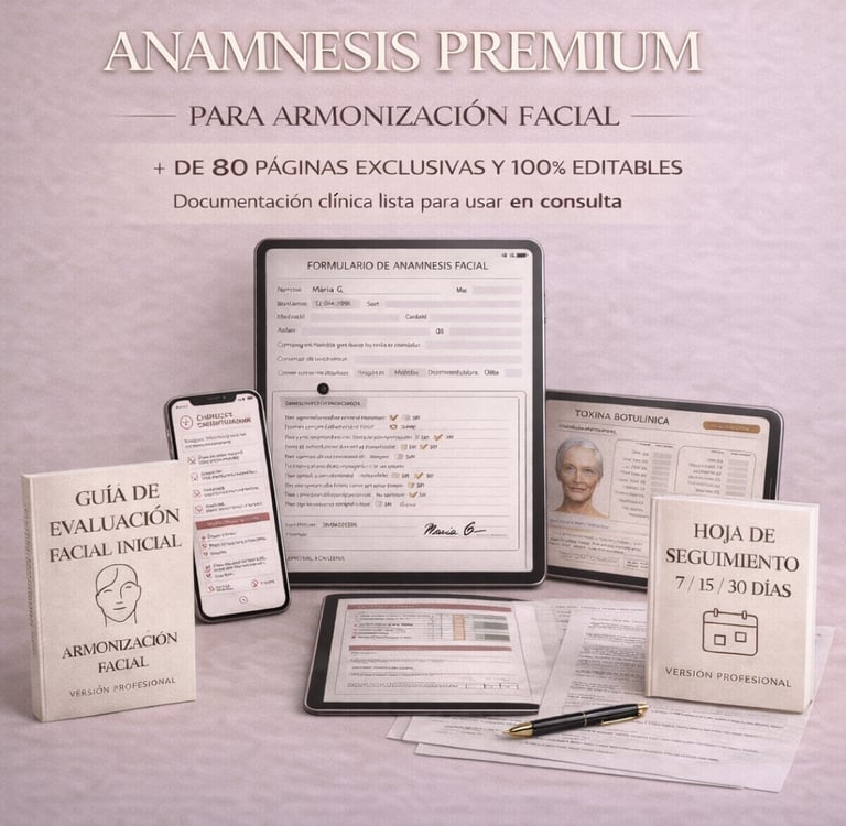 Anamnesis Premium es un paquete completo de documentación clínica profesional, diseñado para armonización facial y estética avanzada.